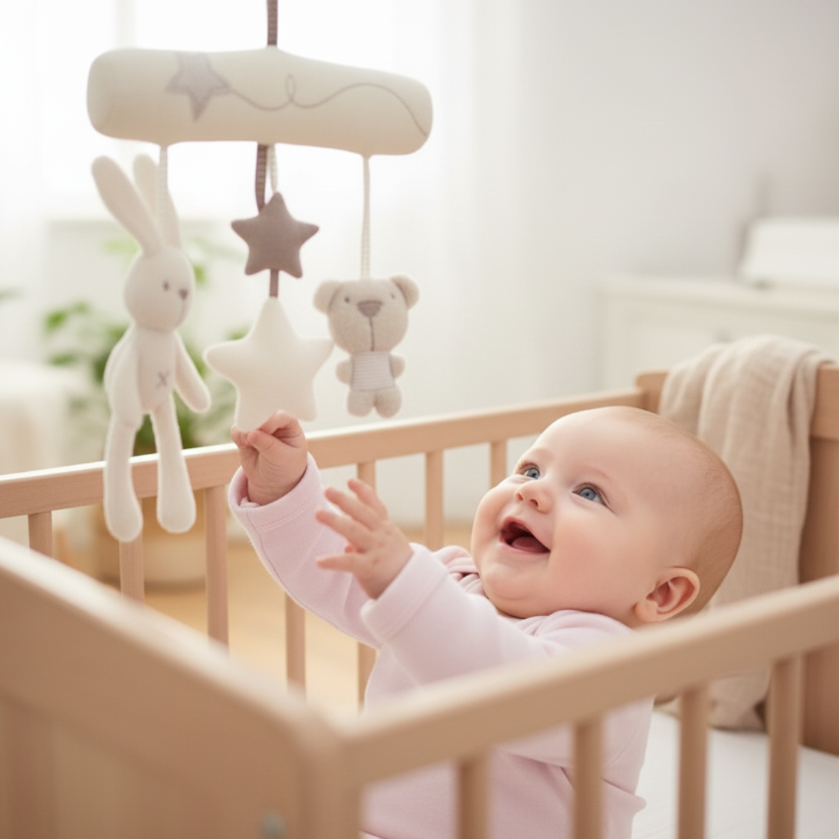 Thanks to its versatile design, it can be easily attached to prams, cots, or even car seats, ensuring comfort and entertainment wherever your baby goes.